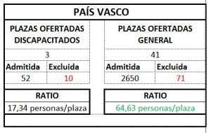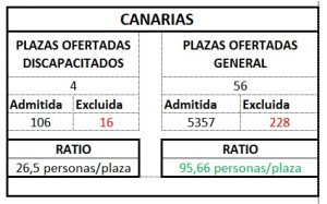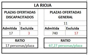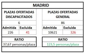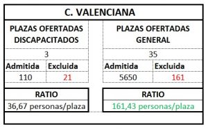 A continuación publicamos el ratio por plaza según ámbito que hemos sacado de los listados publicados:
