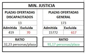 Según los listados completos publicados en la página Web del Ministerio de Justicia, se han presentado 54.060 instancias; de las cuales 52.053 han sido admitidas y tan solo 2.007, excluidas. A éstas, habrá que añadirles las que se presenten debido a la omisión de estas listas publicadas en el plazo de 10 días hábiles para la subsanación de exclusión u omisión, que comenzará el día hábil siguiente a la publicación del BOE anteriormente indicado.
